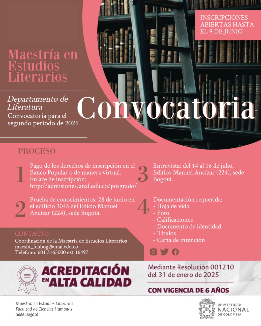 Página Web: https://www.humanas.unal.edu.co/2017/unidades-academicas/departamentos/literatura/programas/maestria/presentacion