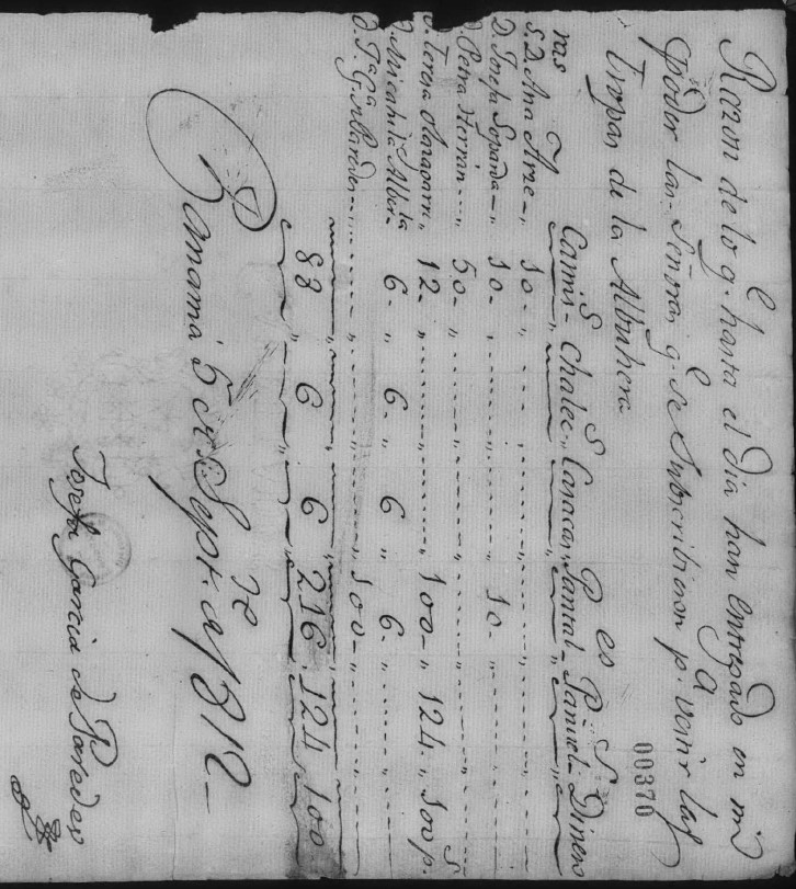 “...Si he mantenido por largo tiempo los Oficiales que se me han puesto dandoles la mas desente asistencia sin interés alguno. Si hè franqueado Camas para el Hospital Militar aperadas de todo lo necesario, y si tanto los Comandantes de dichas Tropas, como muchos de sus oficiales han continuado mi Casa y experimentado en ella una franquesa generosa, y las atenciones que se merecen...”