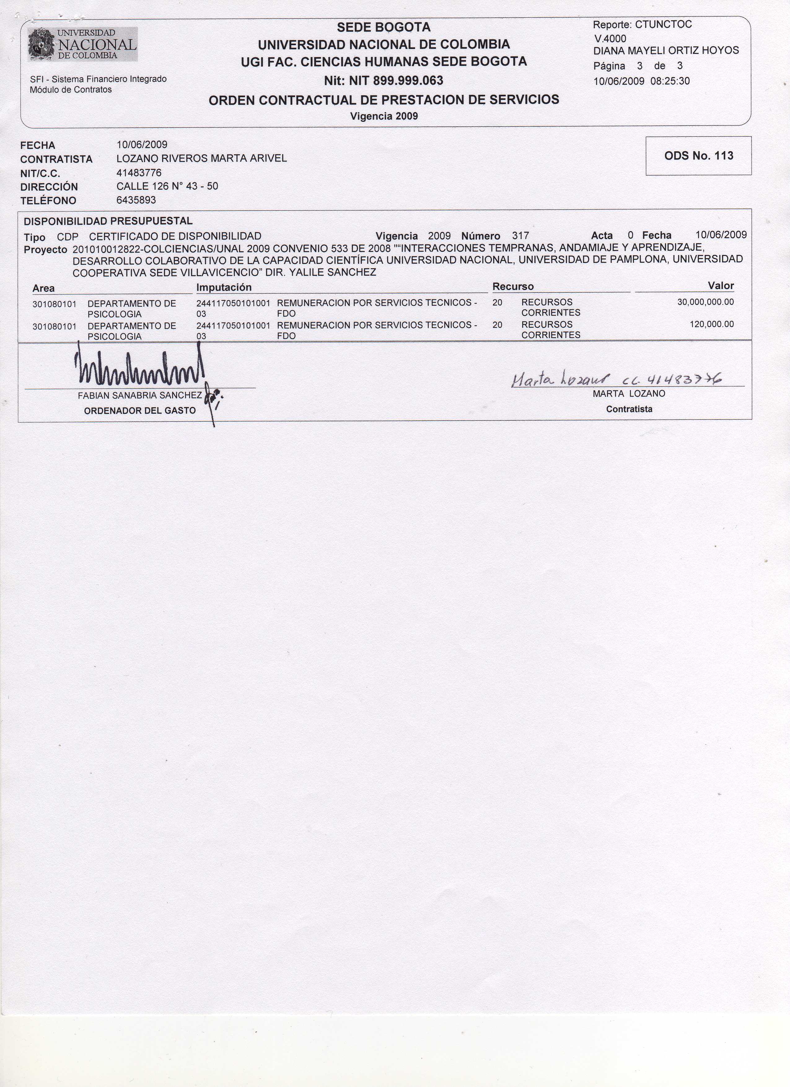 Contratista: MARTA ARIVEL LOZANO RIVEROS