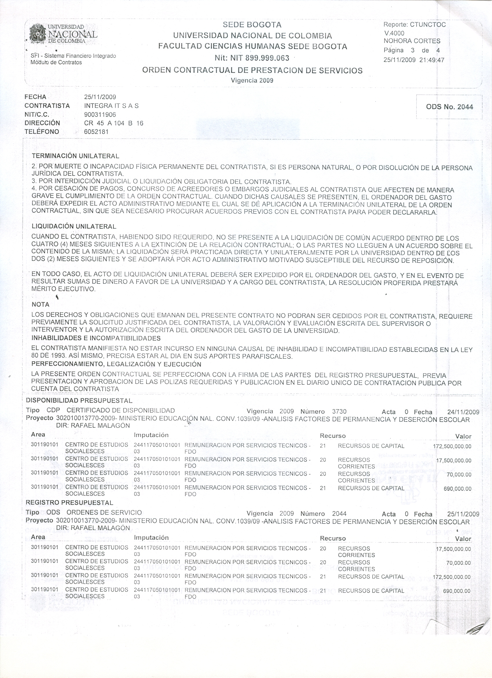 Contrato No. 136 de 2009