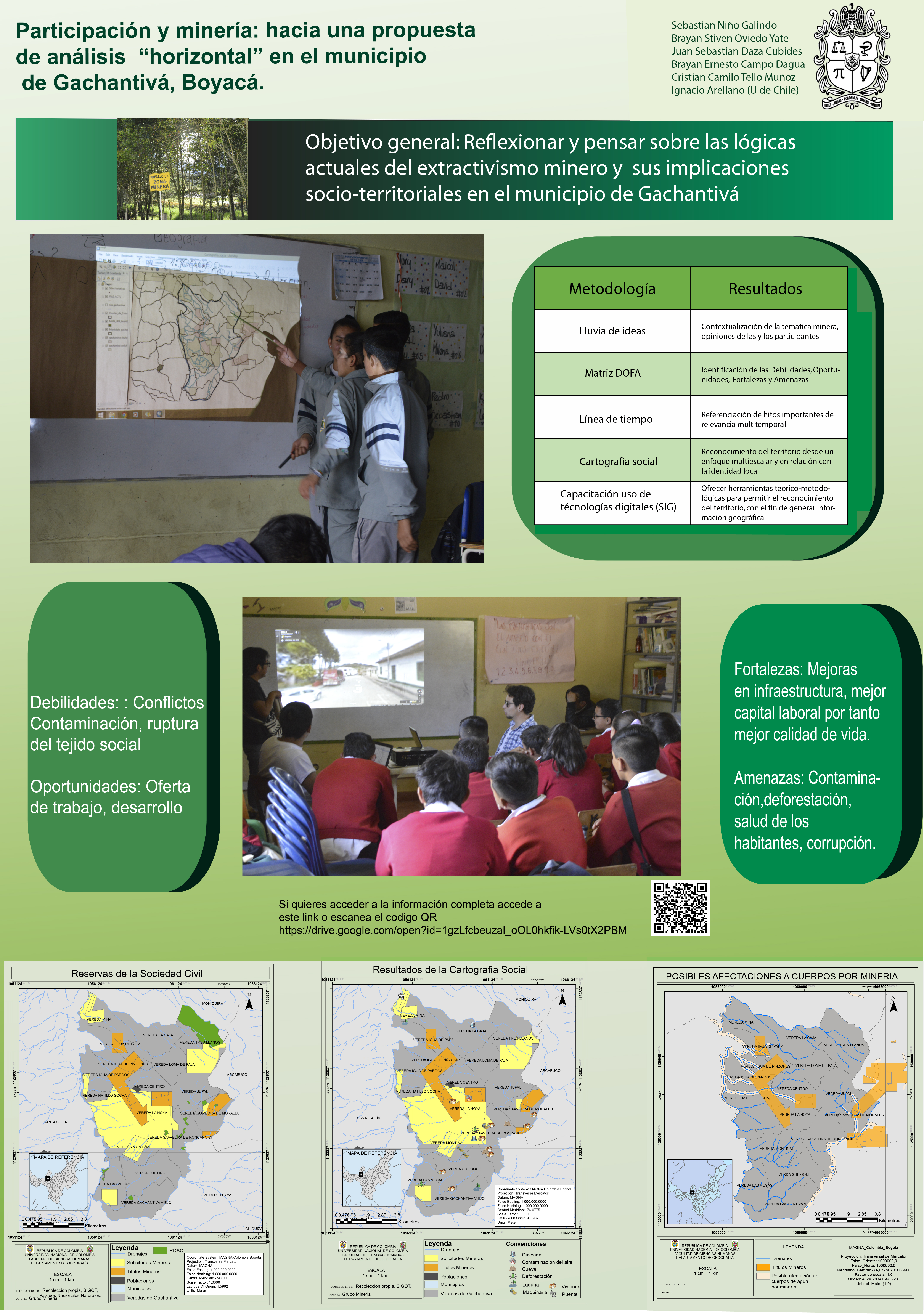 En esta sección se encuentran las infografías creadas por los estudiantes del departamento de Geografía, elaboradas durante los cursos de análisis del paisaje y cartografías participativas, construidas con información resultado del trabajo de campo con comunidades de diferentes lugares del país
